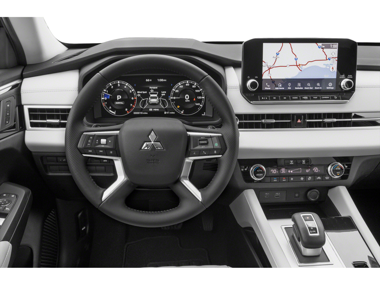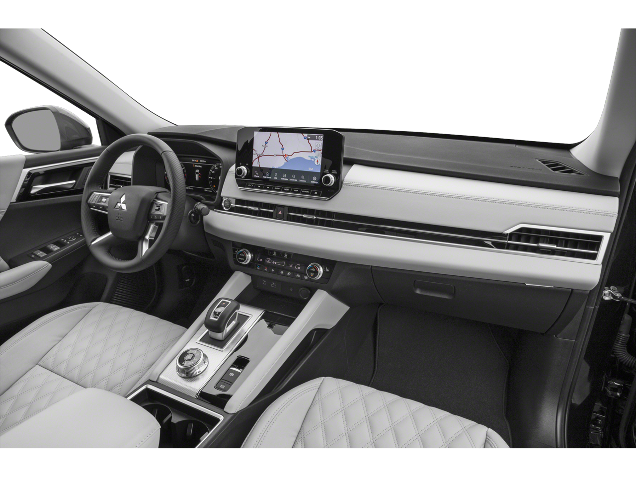 - Radio: AM/FM 9.0" Navigation w/Smartphone Link -inc: 6 speakers, Apple CarPlay, Google Android Auto, SXM all-access and SXM traffic and travel link w/90-day subscription, Mitsubishi Connect, HD Radio, smartphone wireless charger, Bluetooth wireless technology, steering wheel controls for phone, audio and voice recognition and USB ports