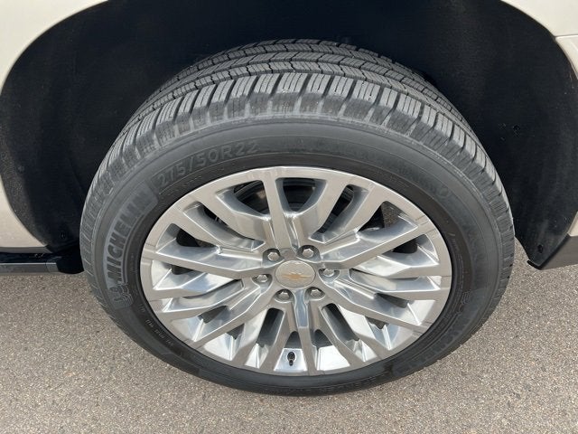 Finished in Empire Beige Metallic with Jet Black/Mocha Leather, this Suburban is loaded with High Country Deluxe, Air Ride Adaptive Suspension, Advanced & Max Trailering Packages, Panoramic Sunroof, Heads-Up Display, Bose Surround Sound, Apple CarPlay/Android Auto, Heated & Ventilated Seats, Power-Running Boards, Remote Start, and 22 Polished Aluminum Wheels.